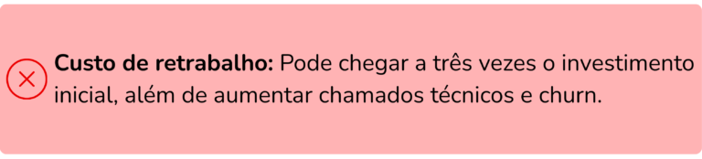 competitividade. O custo de retrabalho pode superar em até três vezes o valor de um projeto bem feito, sem contar custos ocultos como suporte recorrente e perda de oportunidades.
