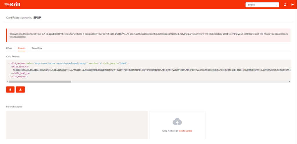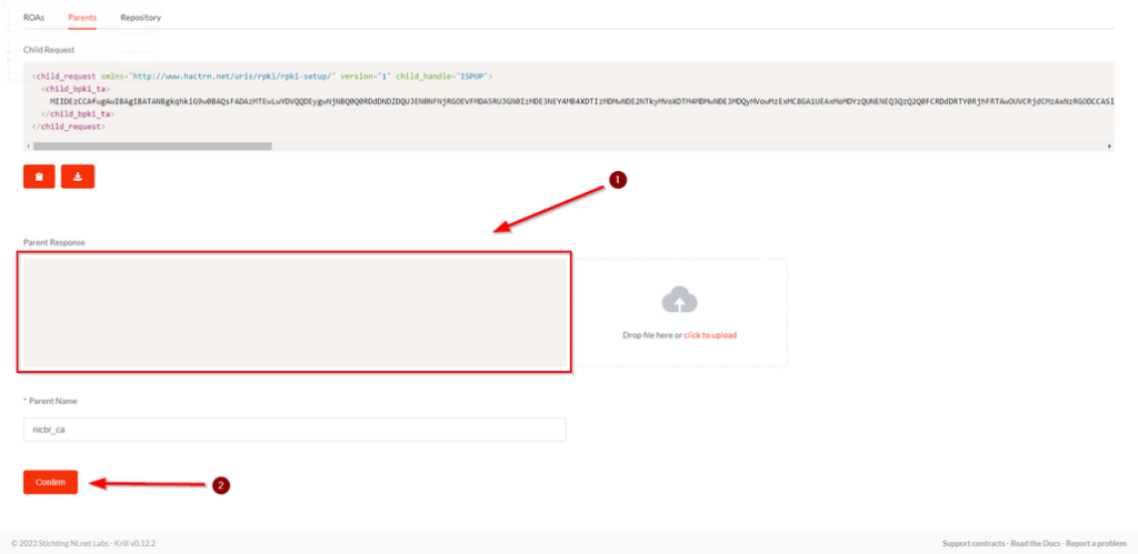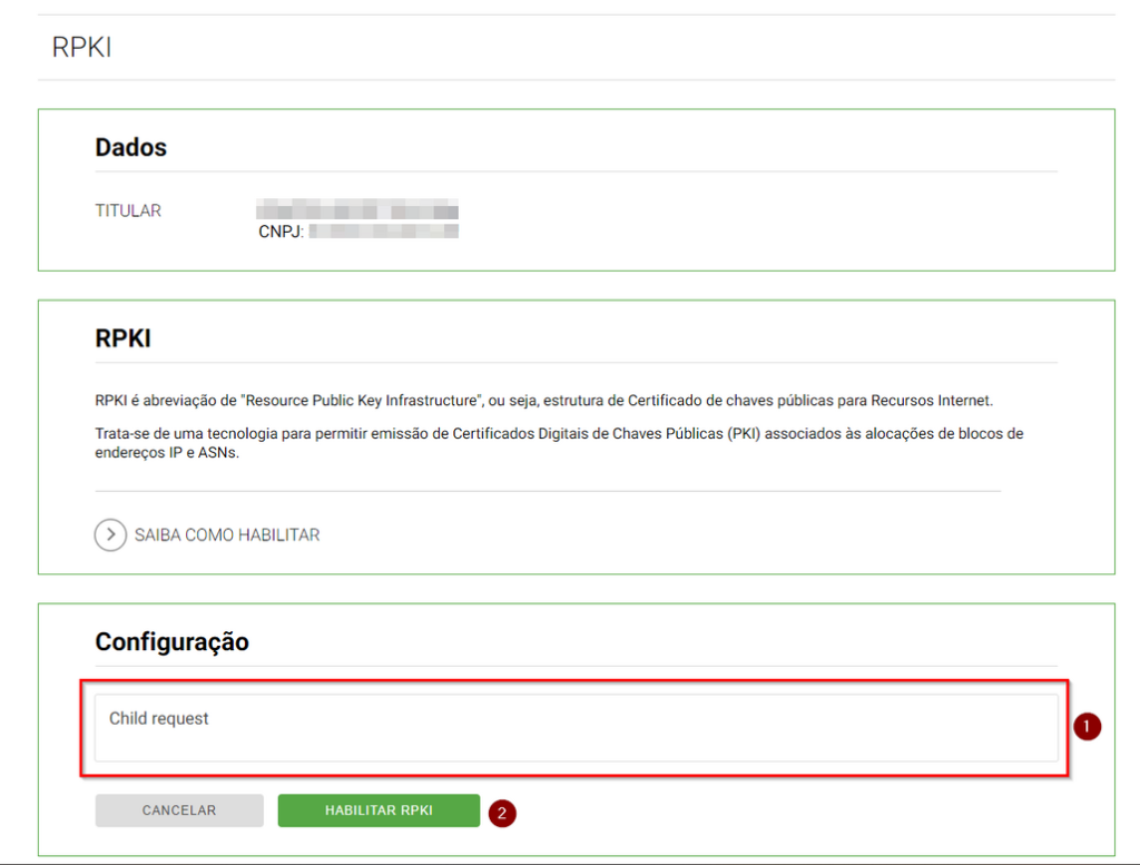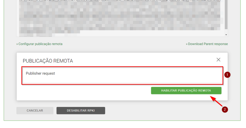 Aquele Child Request que você copiou no krill, vai colar ele na caixa de diálogo abaixo em 1 e clicar em 2 para habilitar o RPKI.