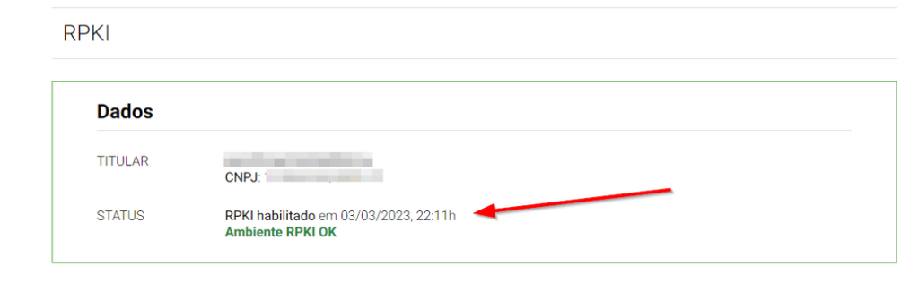 Após toda a configuração no Registro.br se você voltar na configuração do RPKI encontrará uma mensagem assim para confirmar que está tudo OK