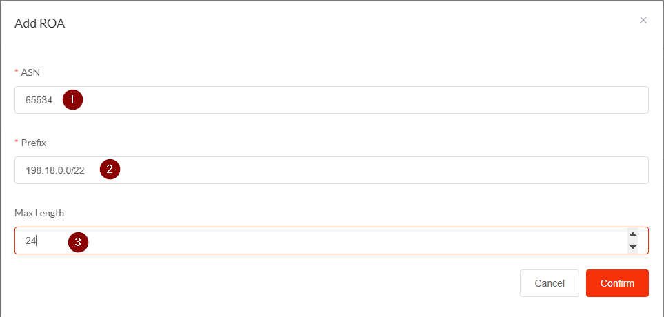 Um exemplo se você cadastrar uma ROA informando apenas o prefixo 198.18.0.0/22 e fizer anúncios como: 198.18.0.0/23, 198.18.0.0/24, esse dois últimos serão vistos como anúncios inválidos porque não existe uma ROA que inclua eles. Nesse caso você deveria criar uma ROA assim: 198.18.0.0/22-24 onde você está dizendo que terá anúncios de /22 até prefixos mais específicos como os /24.