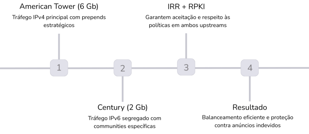 Em cenários complexos com balanceamento de tráfego, prepends, communities e múltiplas políticas de roteamento, ambos garantem que suas decisões técnicas sejam respeitadas e implementadas corretamente pelos upstreams.