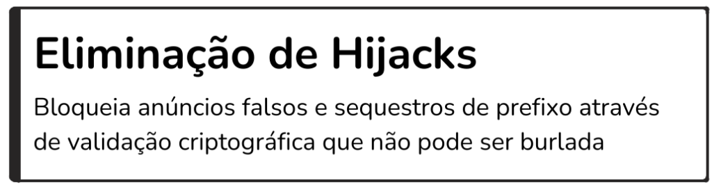 Reduz drasticamente sequestro de prefixo, rotas falsas e instabilidades durante mitigação de DDoS