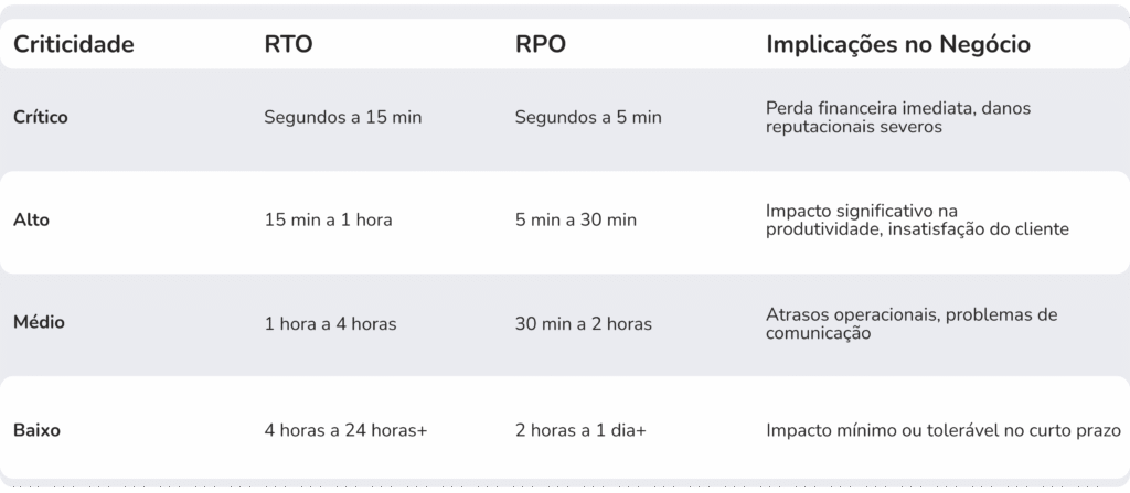 - Defina RTO/RPO e níveis de serviço para priorizar ações de mitigação