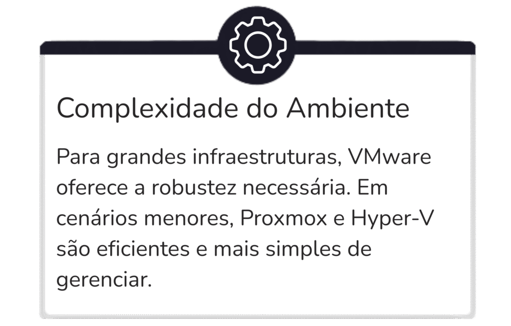 A seleção da melhor solução de virtualização depende de vários fatores estratégicos que alinham a tecnologia às suas necessidades de negócio.